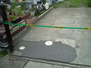 先週の工事の時に、途中で天気が崩れてしまって、セメントを入れられなかったのを、今日入れたんだそうな。
